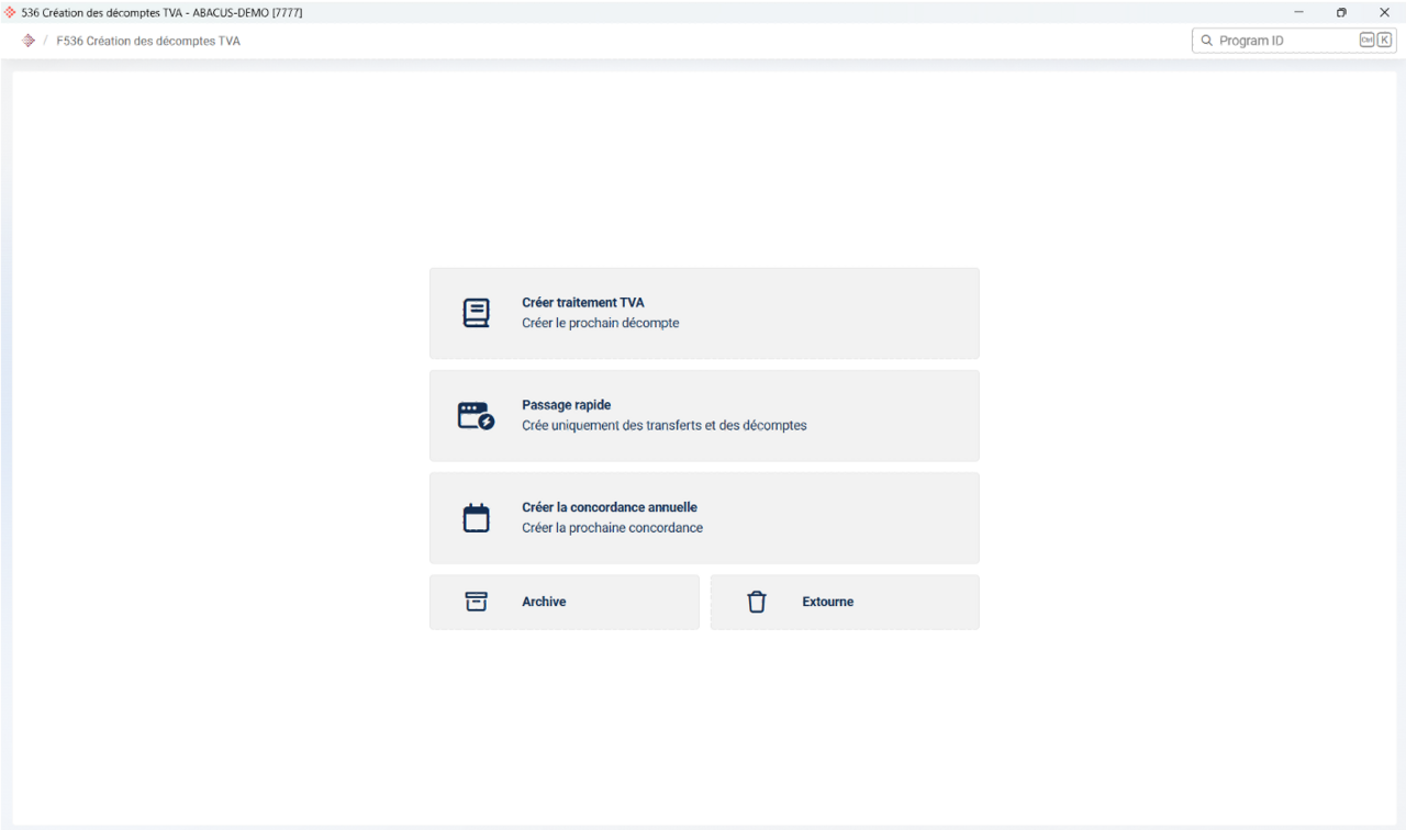 Le programme F536 "Création des décomptes TVA" vous guide pas à pas à travers le processus de décompte TVA et automatise les répartitions. Avec la v2026, une étendue des fonctions élargie est proposée et le programme est désormais disponible dans la Browser Edition.