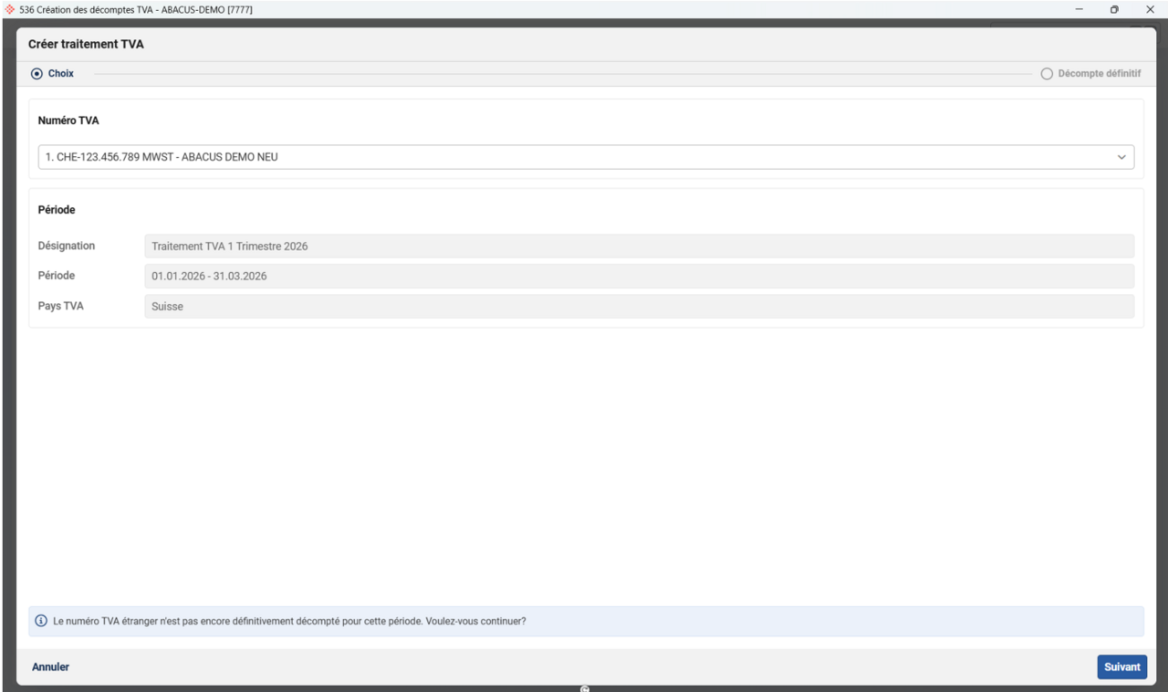 Le numéro TVA et la période à décompter sont ensuite proposés.